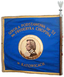 Sztandar szkoły Podstawowej nr 51 ma kształt prostokąta o wymiarach 110 cm na 120 cm. Płat jest tkaniną obszytą złotymi frędzlami. Prawa strona sztandaru - awers - jest w kolorze niebieskim i w centralnej części w kole barwy złota znajduje się postać Fryderyka Chopina. W górnej części znajduje się nazwa szkoły: „Szkoła Podstawowa nr 51 im. Fryderyka Chopina”, u dołu widnieje napis: „w Katowicach”.