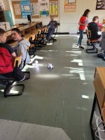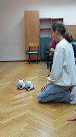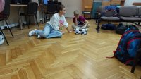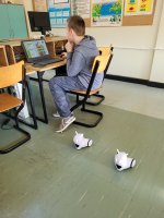 Robot Photon w roli pojazdu autonomicznego kierowanego przez uczniów klasy 8c i 8d.