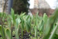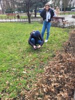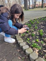 Lekcja informatyki w plenerze. Tym razem zamiast wykorzystywać gotowe grafiki, klasa 8e postanowiła samodzielnie zgromadzić materiały potrzebne do wykonania projektu "Wiosna w obiektywie".