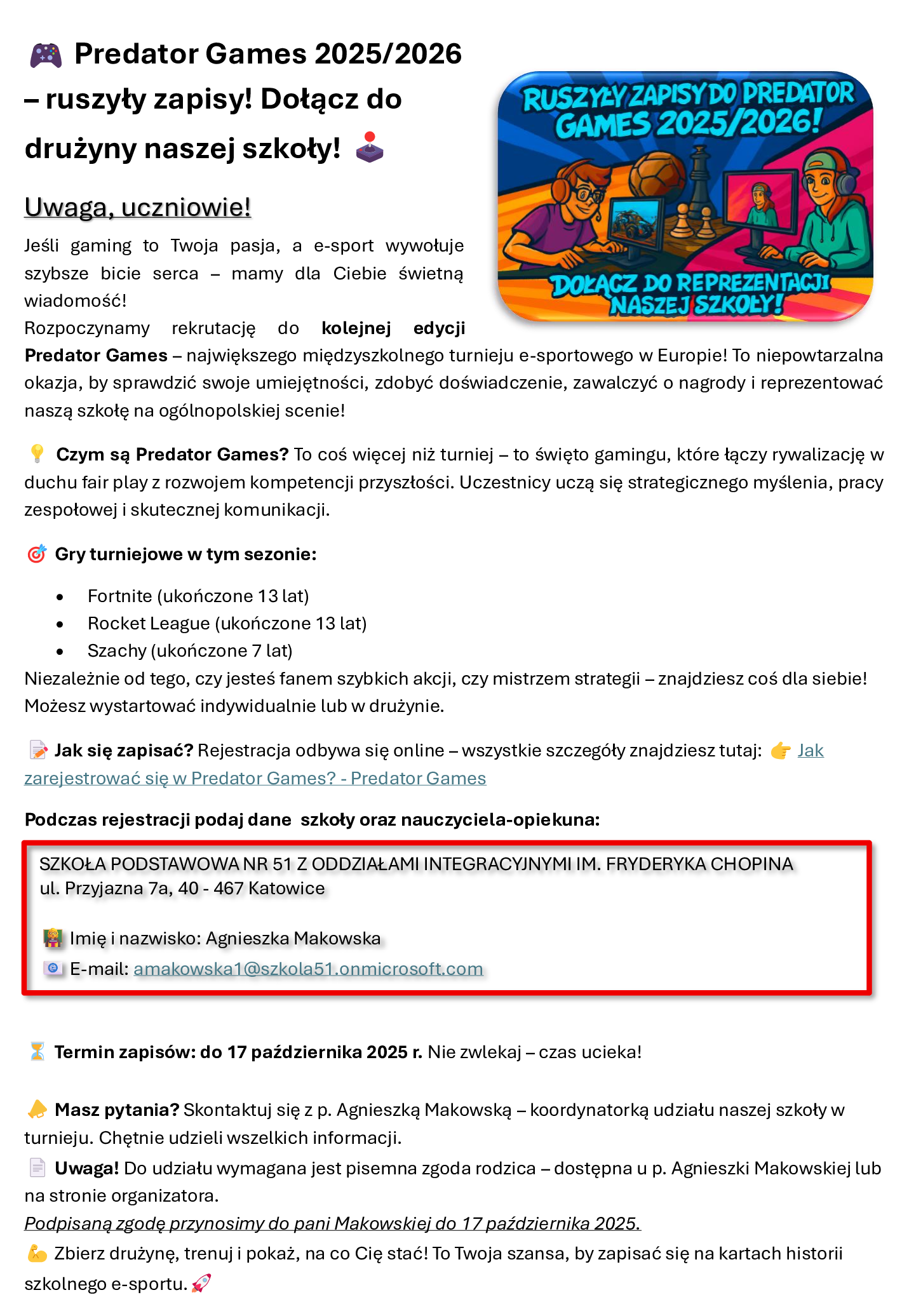SZKOŁA PODSTAWOWA NR 51 IM. FRYDERYKA CHOPINA W ZESPOLE SZKOLNO-PRZEDSZKOLNYM NR 13 W KATOWICACH