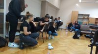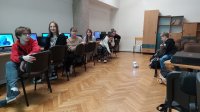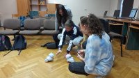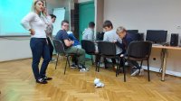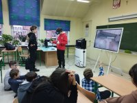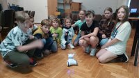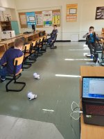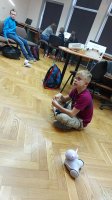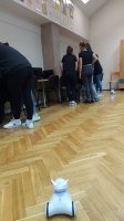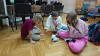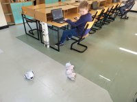 Robot Photon w roli pojazdu autonomicznego kierowanego przez uczniów klasy 8c i 8d.