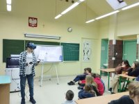 W listopadzie uczniowie wzięli udział w lekcjach chemii z wykorzystaniem "Empiriusza" tj. mobilnego laboratorium chemicznego. Wyposażeni w profesjonalny zestaw gogli VR i kontrolery przeprowadzali wirtualne doświadczenia chemiczne.
