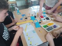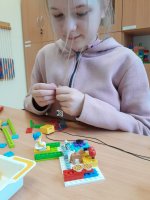 Na lekcjach fizyki konstruowaliśmy z klocków LEGO BricQ maszyny wykorzystujące w swoim działaniu energię mechaniczną. W czasie zajęć uczniowie projektowali logo szkoły i inne przedmioty w programie Tinkercad 3D.